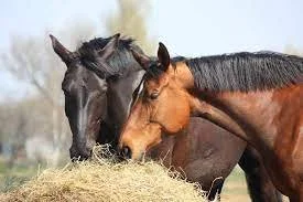 Horses need to graze on small amounts of forage almost constantly. Hay, which provides fiber, nutrients and vitamins in a relatively low-calorie dose, can be fed in this manner all year round!